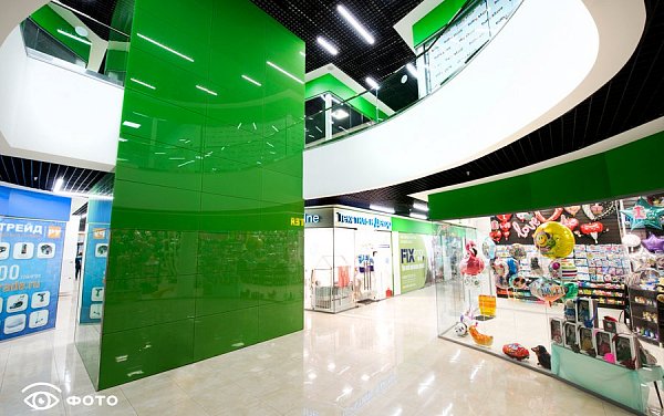 Фасады здания выполнены с активным остеклением, обеспечивающим хорошую визуальную читаемость торговых помещений с улицы. Высота потолков на 1–2 этажах — 4,0–4,2 м, что соответствует требованиям большинства сетевых арендаторов и позволяет эффективно использовать пространство. Инженерные системы централизованы и соответствуют формату торгового центра.